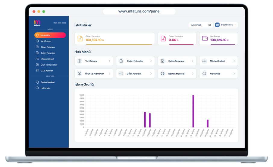 MFatura ile karmaşık süreçler yerini sade ve hızlı çözümlere bırakıyor. Tüm e-Arşiv ve e-Fatura işlemlerini tek panelden rahatça yönetin.